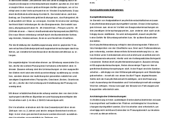 Amprion - Ankündigung von Kartierungsarbeiten für die Trassenplanung im Bereich der Gemeinde Bargenstedt Erdkabelverbindung Korridor B