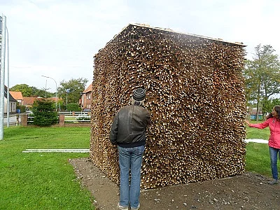 Der Kubus besteht aus Faschinen - eine Form Reisig, die im Wattenmeer zum Bau von Lahnungen verwendet wird.