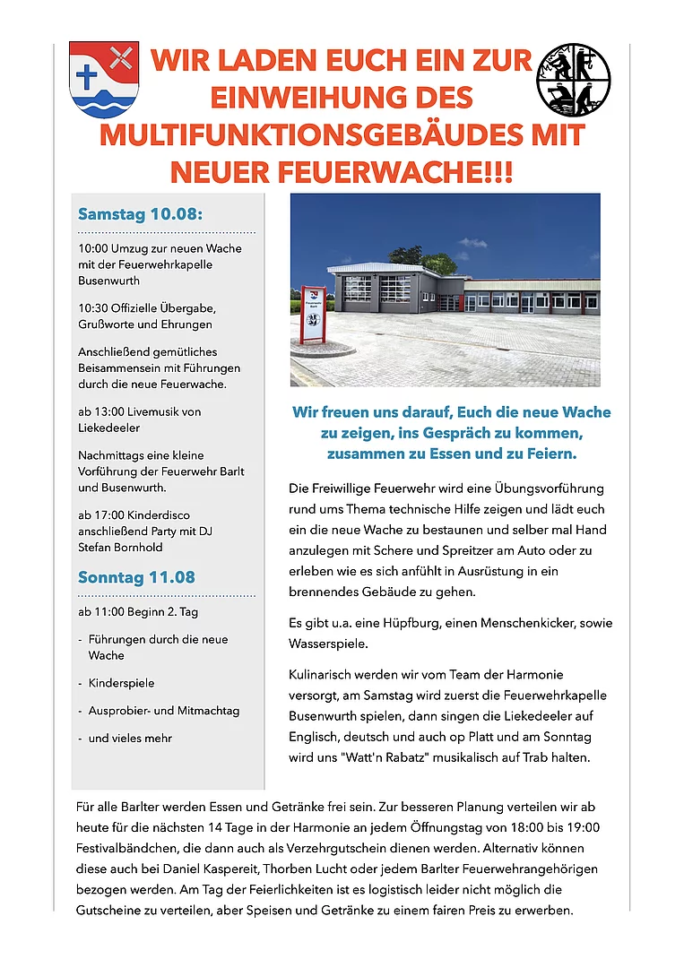 Wir laden Euch ein zur Einweihung des Multifunktionsgebäudes mit neuer Feuerwache!!!