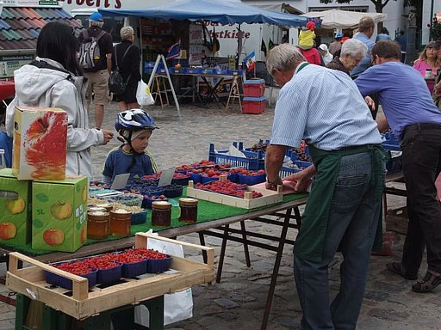 Jeden Freitag findet auf dem Bürgermeister-Golz-Platz ein Wochenmarkt mit regionalen Produkten statt.